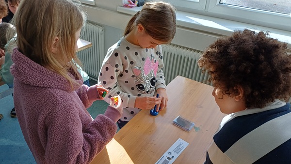 Im Unterrichtsfach „Kunst und Gestaltung“ wurden Zauberbilder gestaltet, wo auch der Tintenkiller zum Einsatz kam. Besonders faszinierend war das Herstellen einer Lavalampe, ein Experiment mit Tinte in Wasser und Öl.