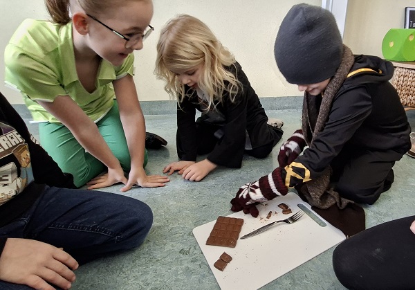 Passend zum Welttierschutztag wurden der Schutz und vor allem die Schaffung von Lebensraum für Wildtiere thematisiert. Das Rechnen mit Zahlenbäumen und das Legen von Symmetrien mit Naturmaterialen zeigt gut, dass sich das Lernen auch in Mathematik nicht immer auf das Klassenzimmer beschränken muss.