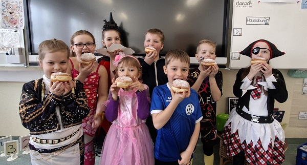 Was wäre ein Fasching ohne die traditionelle Jause? Wir durften uns über köstliche Faschingskrapfen freuen, die uns den Vormittag versüßten.