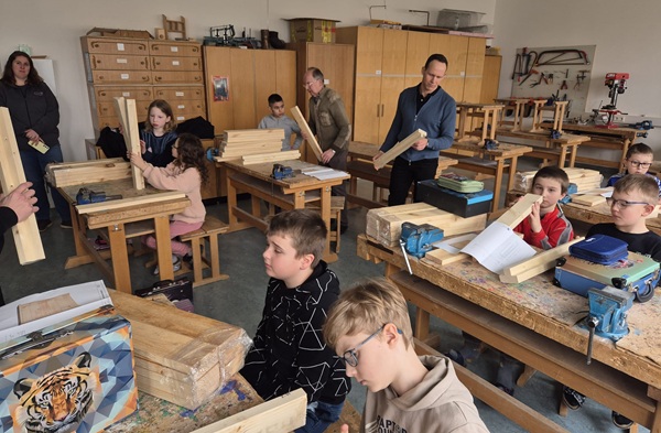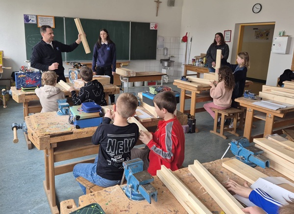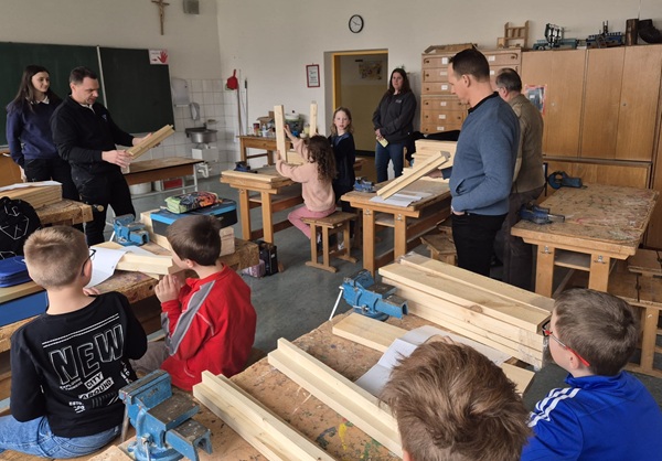 Am Mittwoch, dem 04.03.2026, gab es in der Volksschule Dobersberg eine besondere Werkstunde. Die beiden Firmenchefs der Firma Metalltechnik Kainz GmbH (Alexander Kainz) und Holzbau Willibald Longin GmbH (Willibald Longin) waren gemeinsam mit einer Mitarbeiterin der Firma Longin (Katrin Bauer) und dem Obmann des Naturparkvereines Dobersberg (Leopold Ledwinka) zu Besuch und gestalteten mit Klassenlehrer Otmar Strondl gemeinsam eine Doppelstunde des Werkunterrichtes.