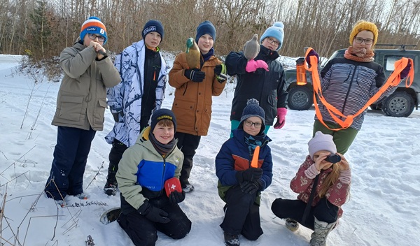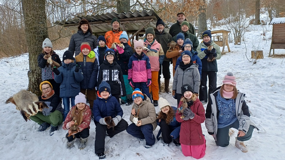 Am 20. Februar besuchten die 3. und 4. Schulstufe der Volksschule Dobersberg mit Klassenlehrer Otmar Strondl das Jagdrevier Merkengersch im Hegering Niederedlitz. Schon der Weg ins Revier war ein Abenteuer - ein kalter Wintertag, frische Fährten, Spuren und Geläufe und dann noch die halbe Schipiste beim Maiswald erklimmen. Bei einer Rehwildfütterung angekommen, erwarteten die Schülerinnen und Schüler sämtliche Jäger des Hegerings. Hegeringleiter Ernst Zieser und seine Weidkameraden zeigten den Kindern viel Wissenswertes rund um die Jagd. Auch das Ausprobieren einiger Utensilien stand am Programm – Kitzsuchgerät, Wärmebildkamera, Lockinstrumente und Tarnkleidung wurden unter die Lupe genommen. Abschließend gab es eine Jause, wobei die Wildwurst besonders gut schmeckte!