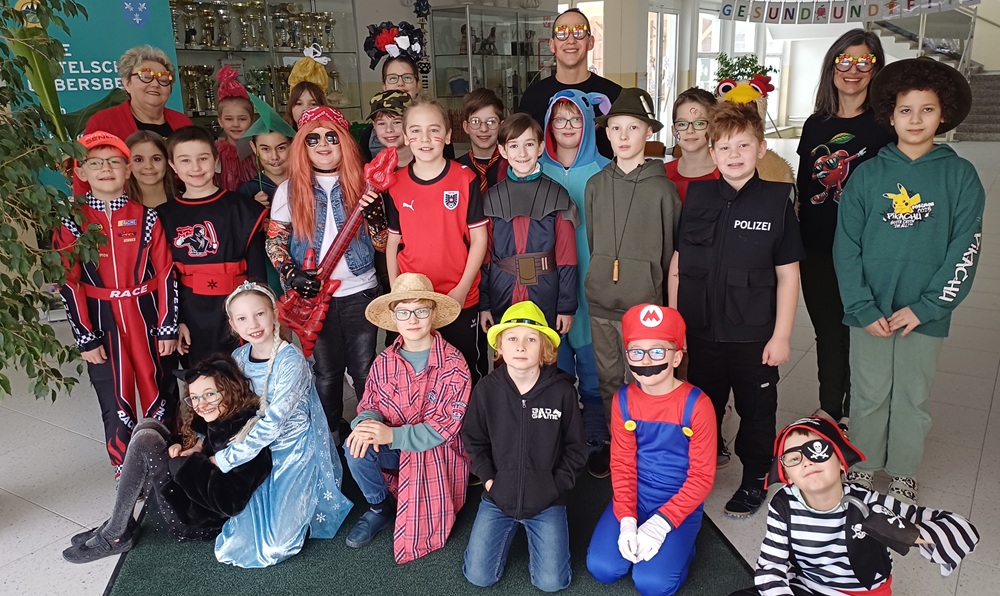 Bereits in der Früh stürmten Feuerwehrmänner, Piraten, Prinzessinnen und Fußballer das Schulgebäude. Die Kinder übertrafen sich gegenseitig mit ihren grandiosen Kostümen. 🤡🤠👸 Bei verschiedenen Faschingsstationen und lustigen Spielen konnten sich alle so richtig austoben und die närrische Zeit in vollen Zügen genießen.